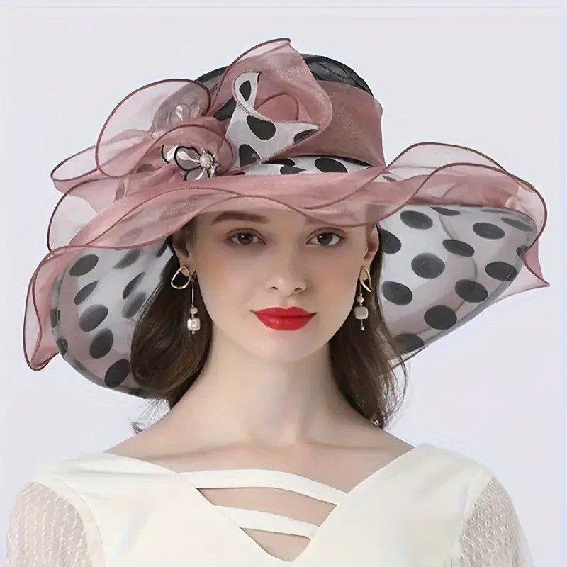 European and American Style Polka Dot Decorative Wide Brim Hat Women's
