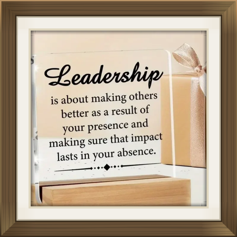 2D Flat, 1pc Inspirational Acrylic Desk Sign with Wooden Base - Leadership Quote "Making Sure That Impact Lasts" - Clear Home & Office Decor, Indoor/Outdoor Use, No Power Needed, Perfect Gift for Men & Women, Inspirational Gift | Sleek Tabletop Display |