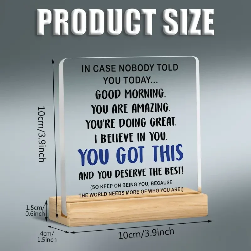 [2D Flat] 1pc Heartwarming Encouragement Acrylic Ornament 'Good Morning, Positive Energy Quotes' - Inspirational Desktop Display with Wooden Stand for Office, Study, or Healing Gift Series, Positive Affirmation Decor | Classic Style | Clear Acrylic, Inspi