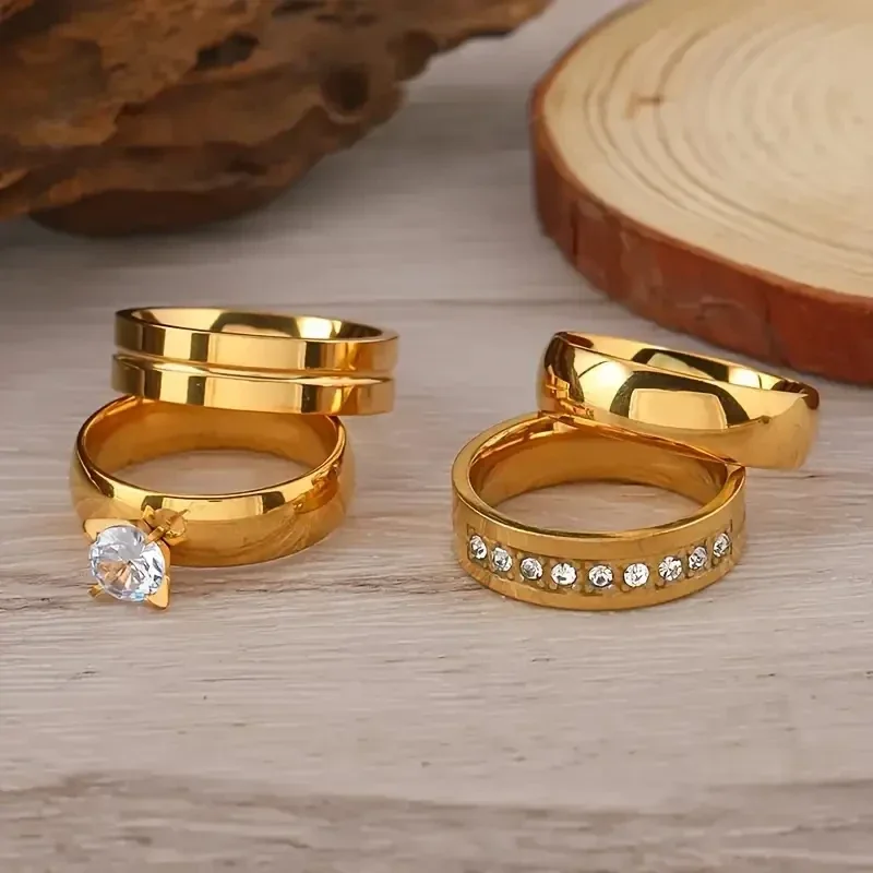 4pcs Fashion Stainless Steel Ring Set, Simple Retro Rings, with Rhinestone Accents,